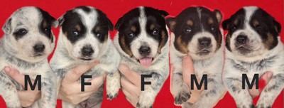Mav and Ruby have one blue female puppy born 26 December 2025. The kennel has decided to retain this puppy ("Indi") for breeding in the near future, and this photo is of Indi at 12 weeks of age. Unfortunately the kennel will have no red pups available until next spring at the earliest. Thank you to all those who have enquired about a red puppy. For information on blue puppies that are available, please look at the two litters listed below.